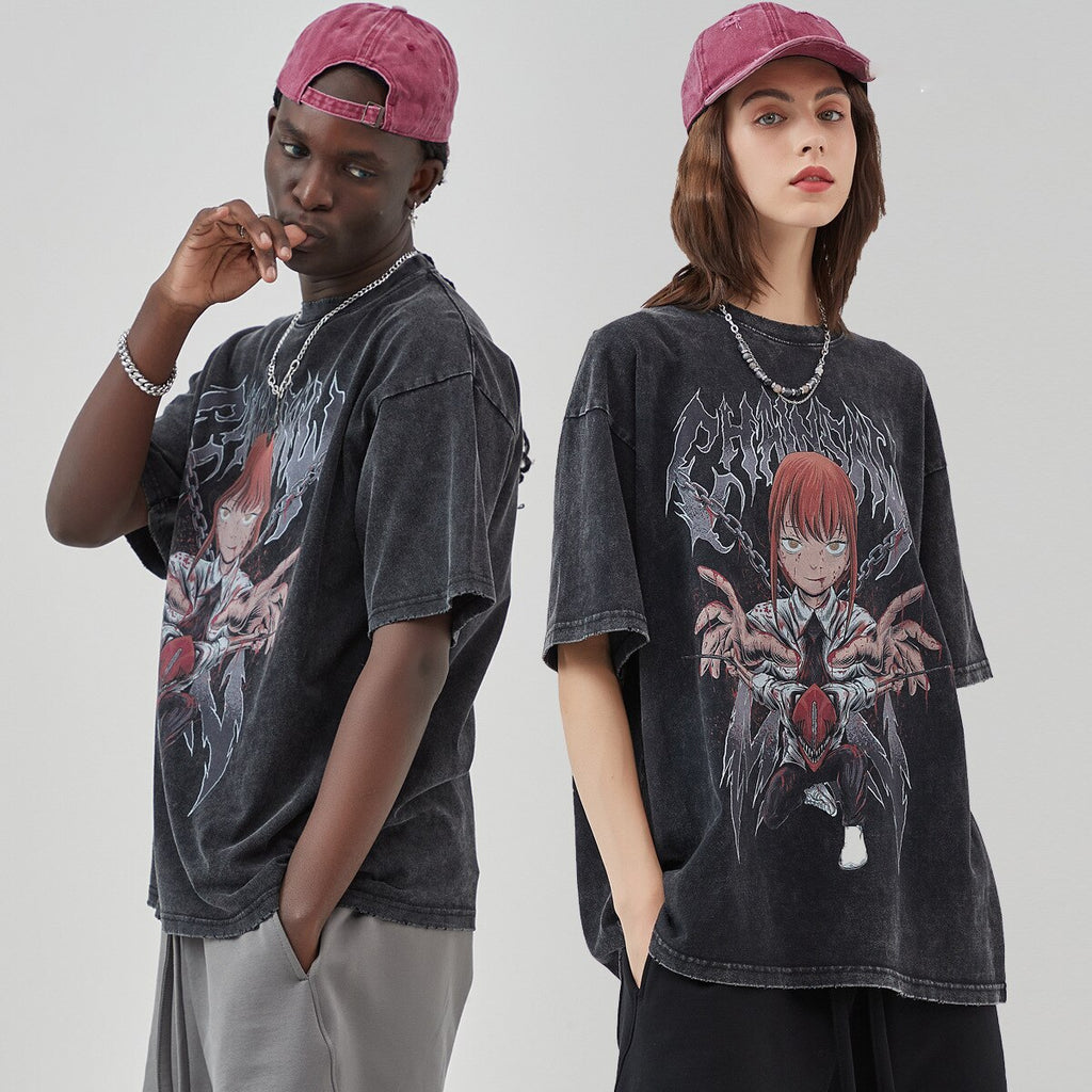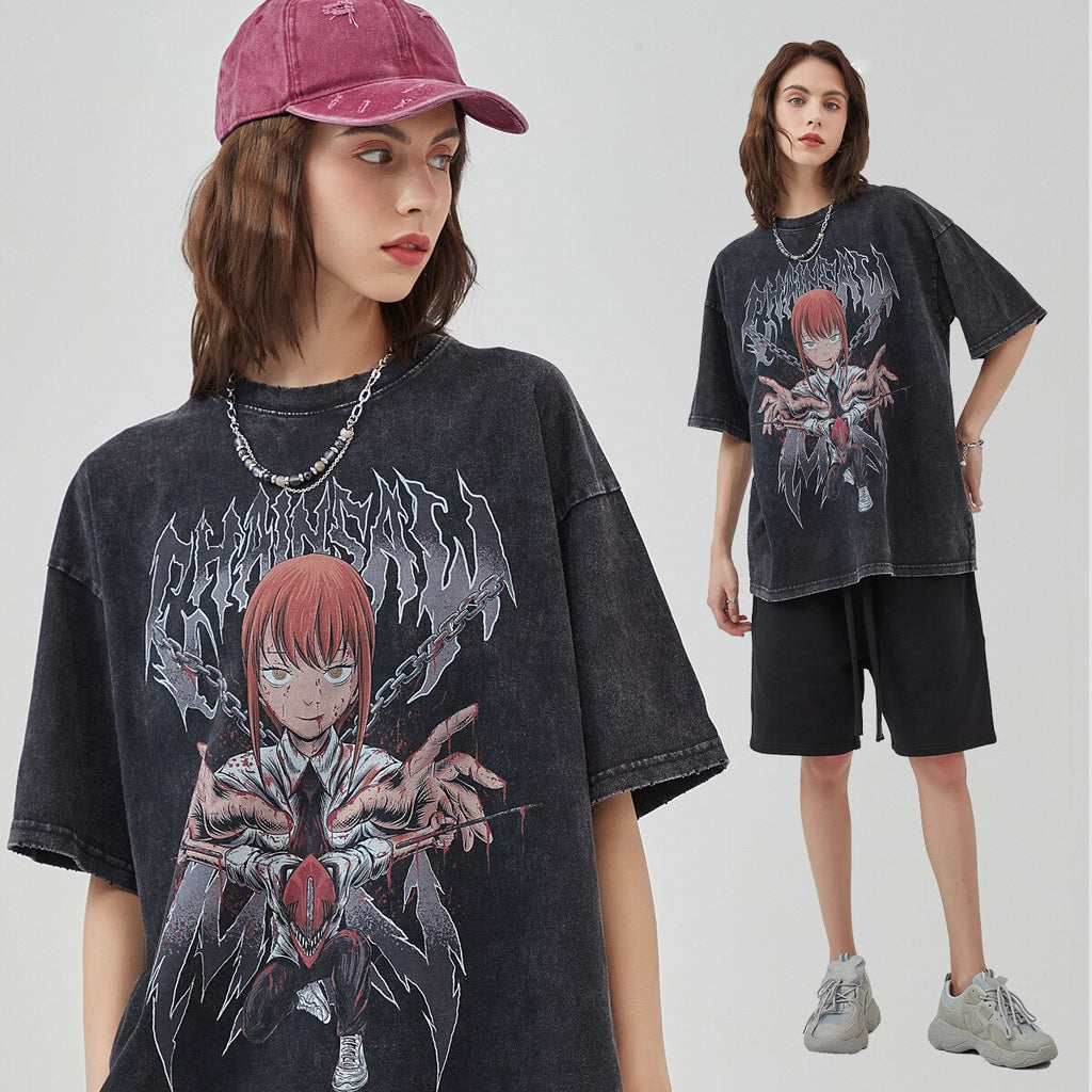 Eleve seu estilo geek com a Camisa Makima, Vintage, e mostre sua paixão por Chainsaw Man de forma estilosa e confortável! 🌟🖤