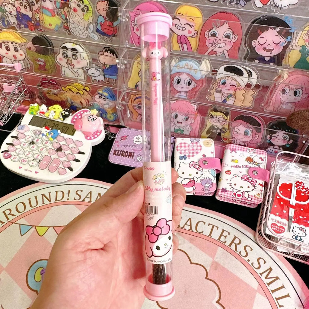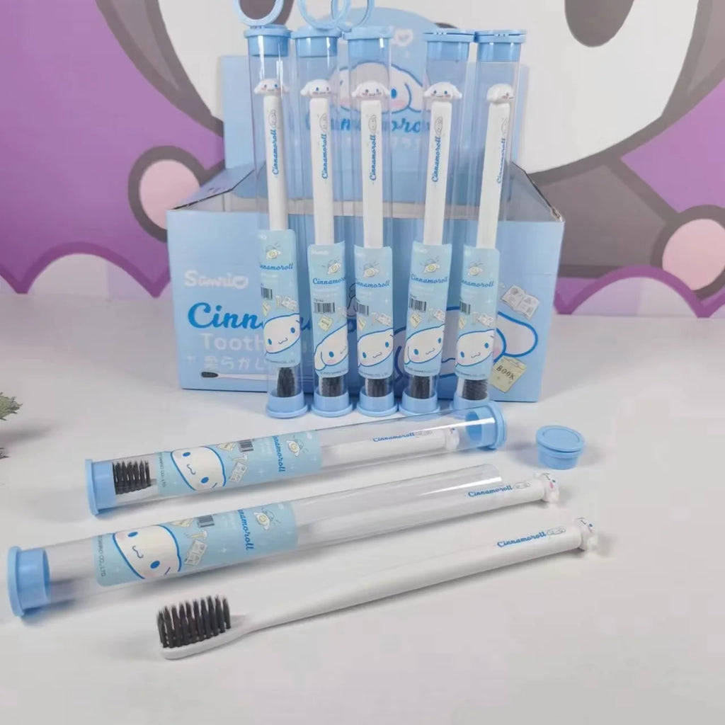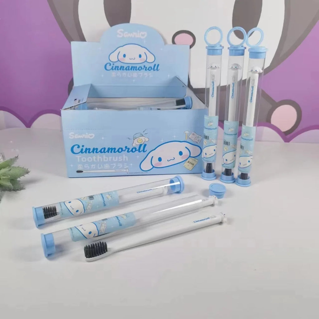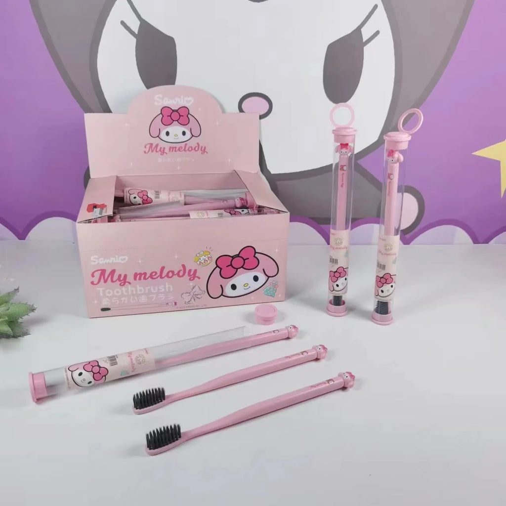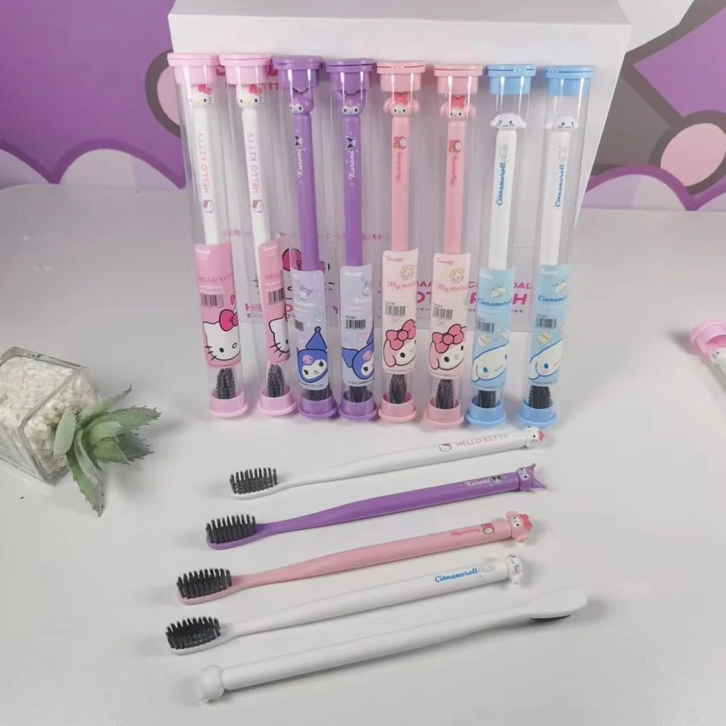 Divirta-se escovando os dentes com a companhia da sua turma favorita! Hello Kitty, My Melody, Kuromi, Cinnamoroll, Pochacco e Pompompurin tornam o momento da escovação muito mais divertido. 🐾💖
