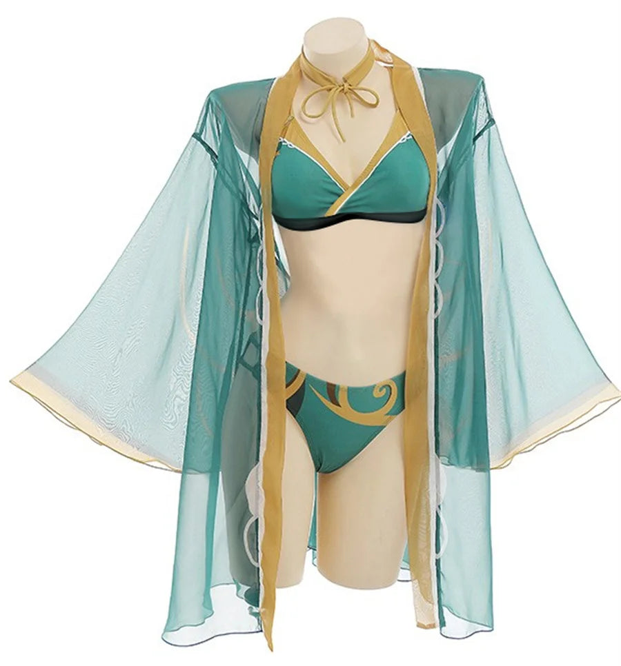 Mergulhe no universo de Genshin Impact com o Biquíni Elegância Elemental, inspirado no charme e na beleza das personagens mais icônicas do jogo! 💙🔥 Seja na praia ou na piscina, este conjunto é perfeito para quem deseja unir estilo, conforto e fandom em um só look!