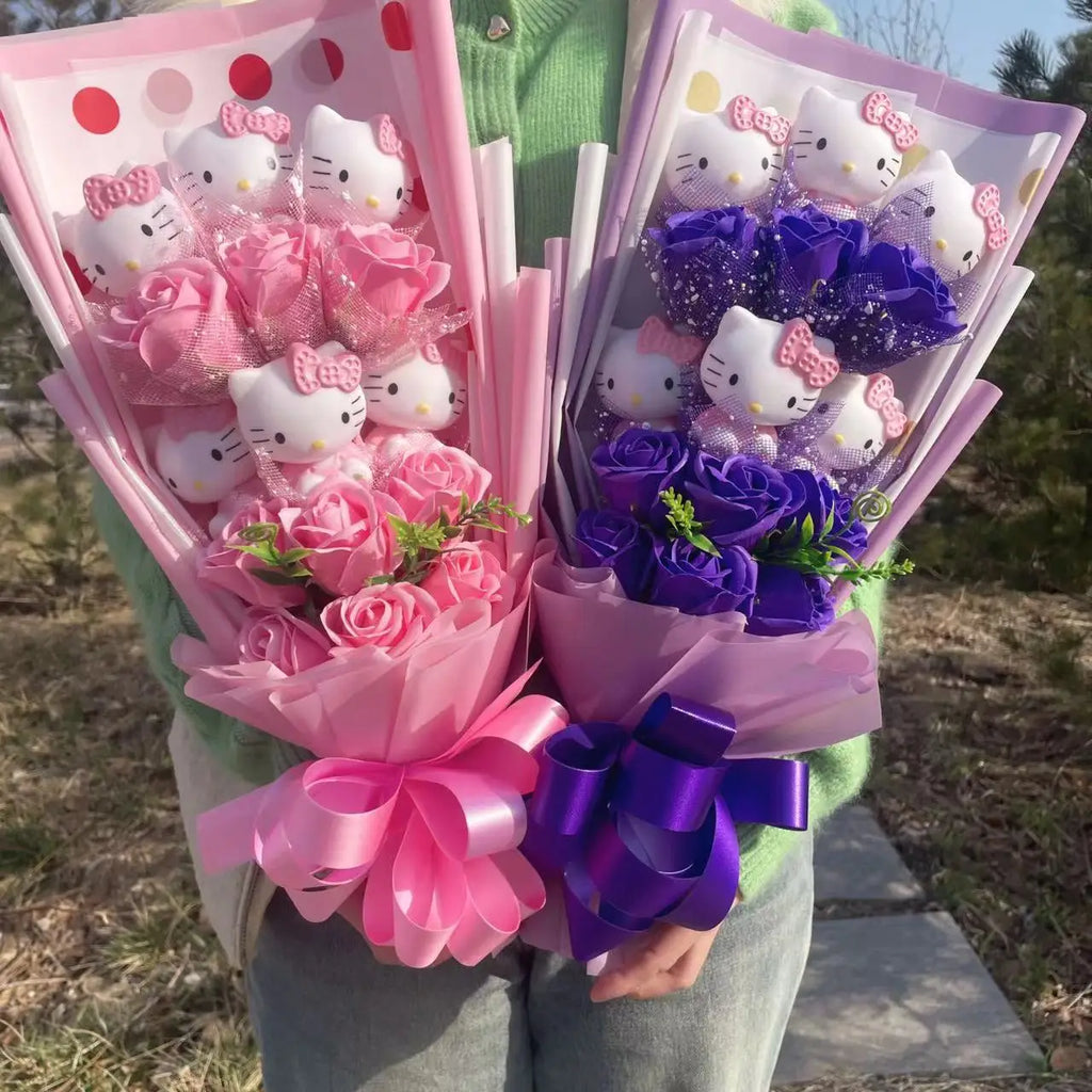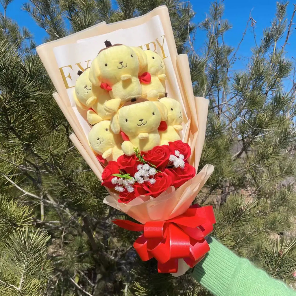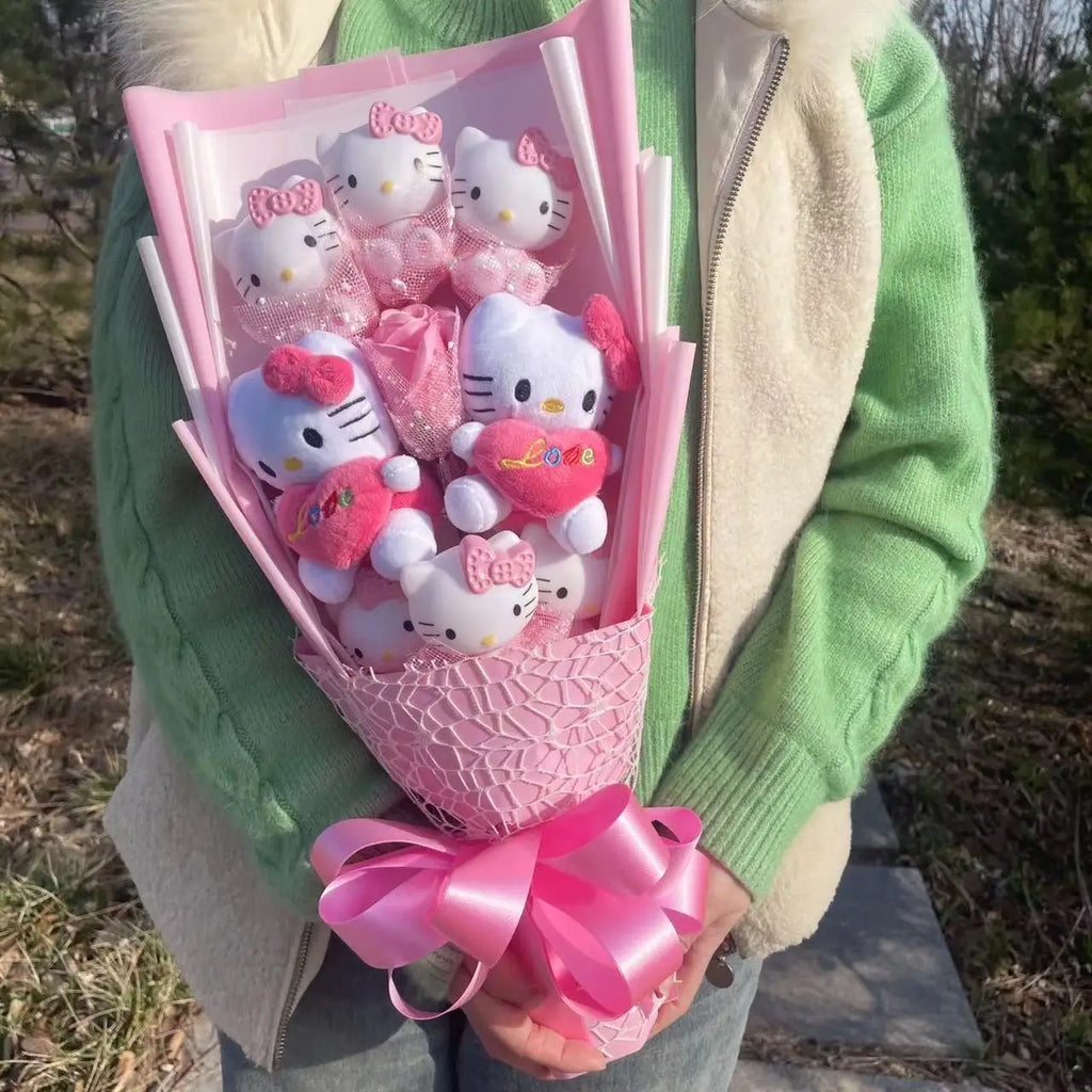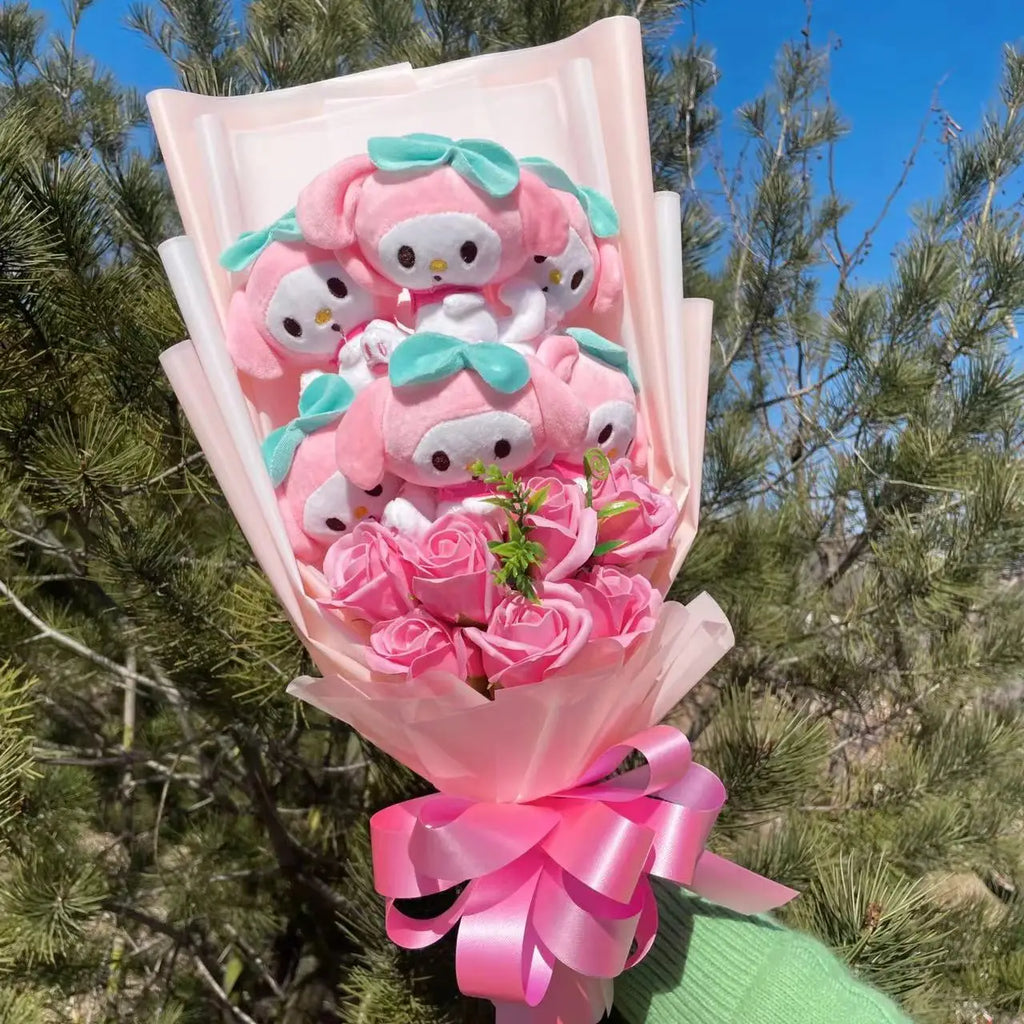 Encante corações com esse buquê mágico, recheado de pelúcias de personagens icônicos da Sanrio: Hello Kitty, My Melody ou Pompompurin. Cada arranjo é montado à mão com muito carinho, combinando pelúcias kawaii, flores artificiais e laços delicados que tornam esse presente simplesmente inesquecível.