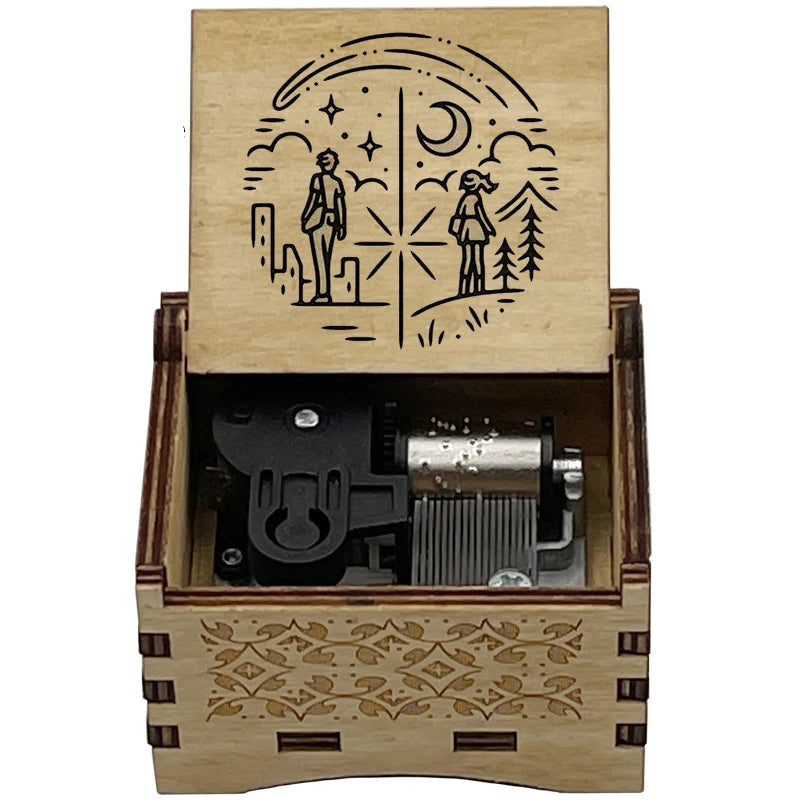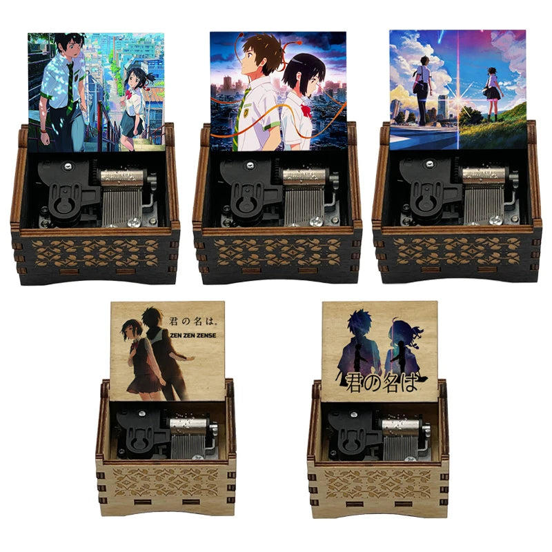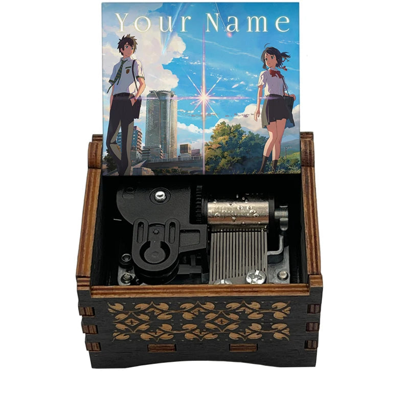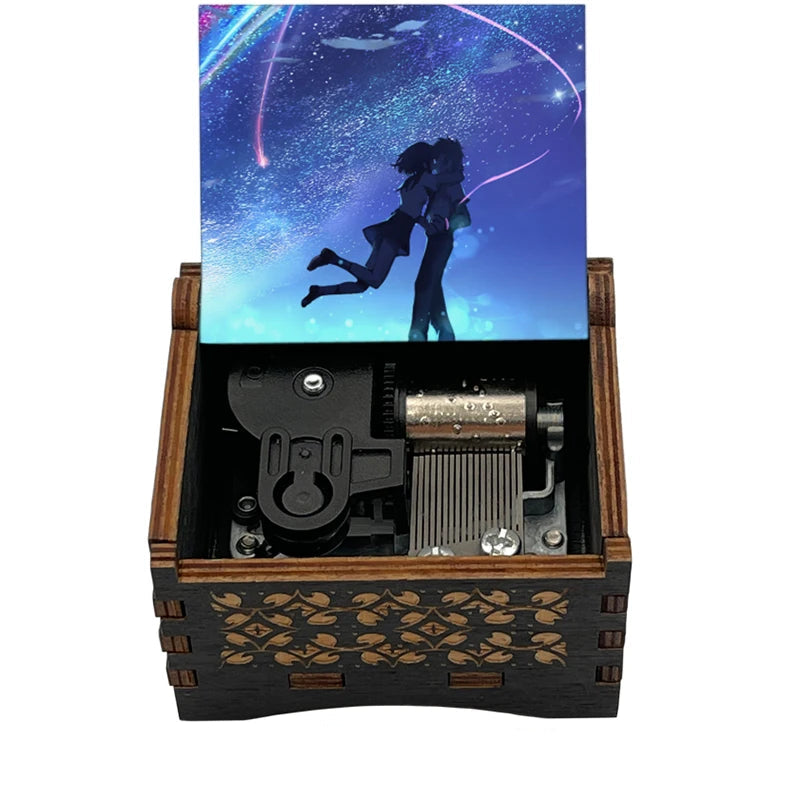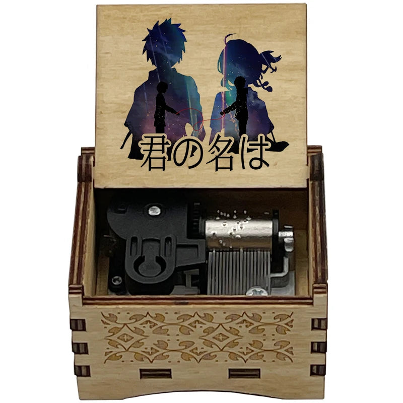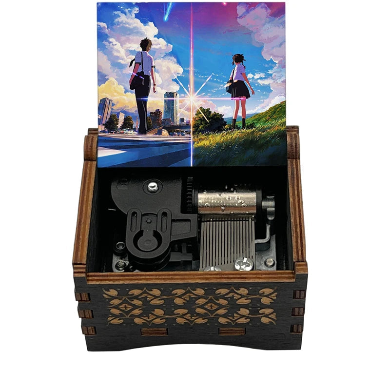 Para os apaixonados por histórias que cruzam tempo e destino, a Caixa de Música Your Name é o presente ideal. Com ilustrações vibrantes e delicadas do filme Kimi no Na wa e melodia mecânica manual, essa peça traz à tona a nostálgica e icônica "Zen Zen Zense" — trilha sonora oficial do longa animado mais amado de Makoto Shinkai.
