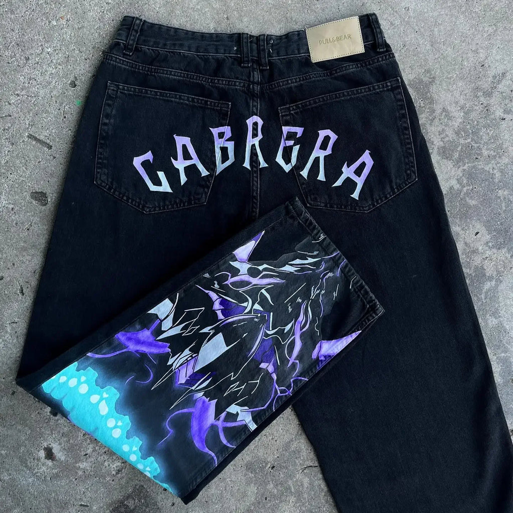 Estilo Harajuku + Y2K com toque street moderno, ela tem caimento solto, cintura alta e tecido jeans resistente com acabamento especial. Ideal pra montar looks únicos em eventos geek, festivais ou rolês alternativos.