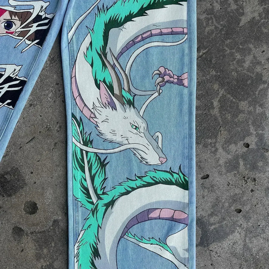 Para os fãs do universo Ghibli, a Calça Ventos de Ghibli traz o toque mágico que sua coleção de estilo precisava. Com corte wide leg e acabamento em denim de alta qualidade, ela mistura conforto e atitude com a beleza e a leveza dos filmes de Ghibli.