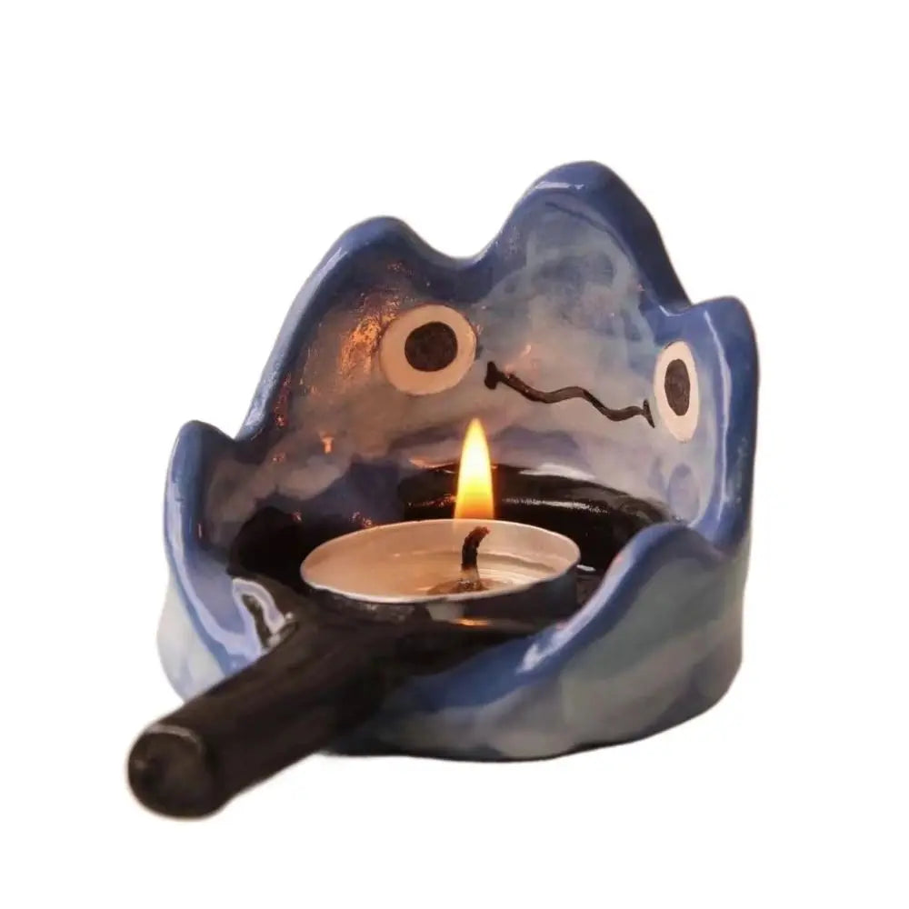 Traga a magia do Studio Ghibli para sua casa com este porta-velas inspirado no icônico Calcifer! Feito de resina premium e pintado à mão, cada peça é única e cheia de personalidade. 🕯️