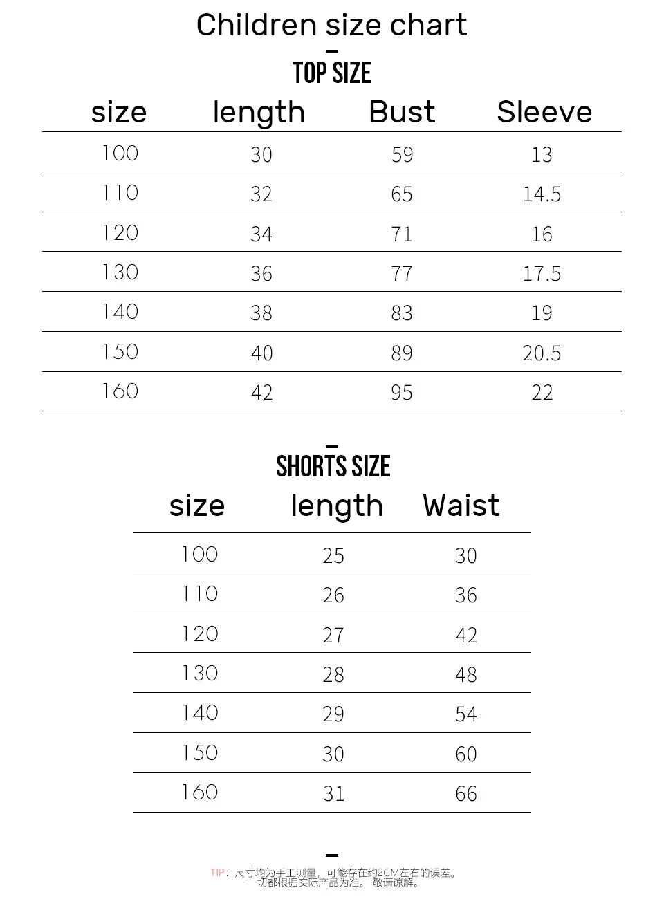 Tabela de Tamanho Infantil