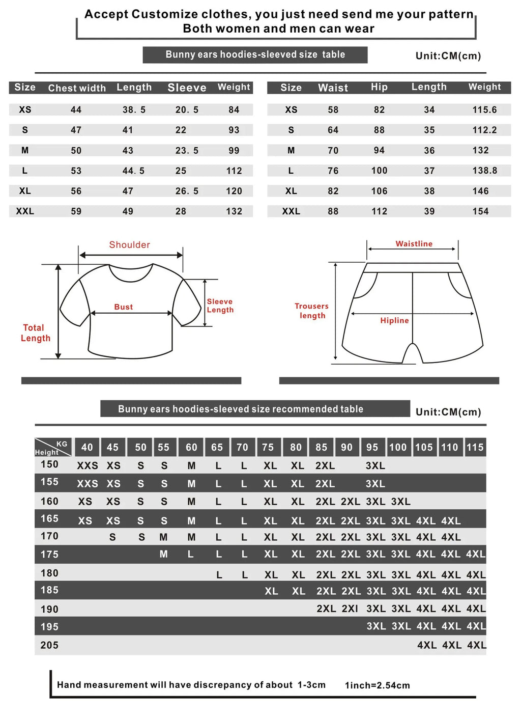 Pode haver uma diferença de tamanho de até 1-2 cm, dependendo da natureza do tecido utilizado.