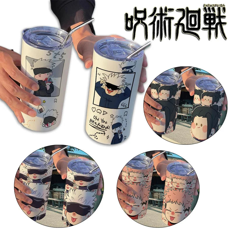 Inspirado em Jujutsu Kaisen, ele combina visual impactante com praticidade no dia a dia — ideal para manter sua bebida quente ou gelada por horas, enquanto carrega a força do seu personagem favorito!