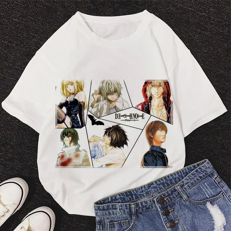 Disponível em 6 opções de estampas e cores, esta camisa oferece uma variedade de designs incríveis que destacam os personagens icônicos do anime, como Near, Misa, L e muitos outros. Cada estampa é cuidadosamente criada para capturar a essência única de cada personagem, tornando cada peça verdadeiramente especial.