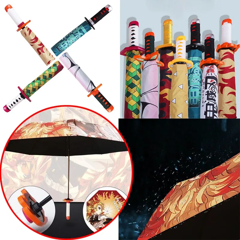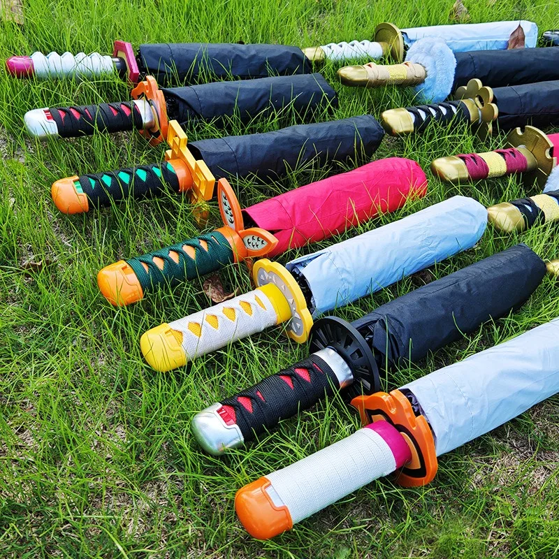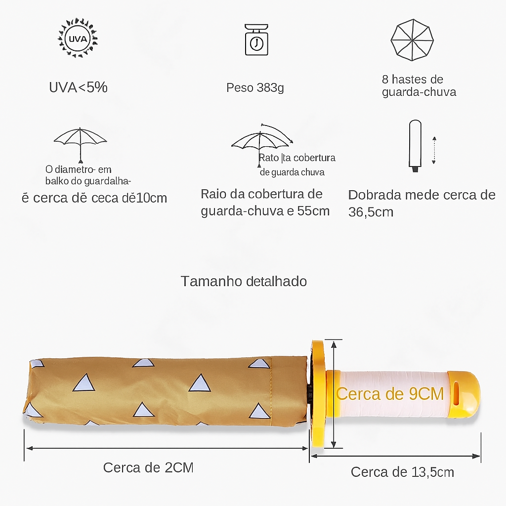 Transforme os dias de chuva em cenas épicas com este guarda-chuva inspirado nas Espadas Nichirin de Demon Slayer! Com design fiel aos personagens como Tanjiro, Zenitsu, Rengoku e outros caçadores de oni, ele simula o cabo de uma katana e vem com capa temática estilosa.