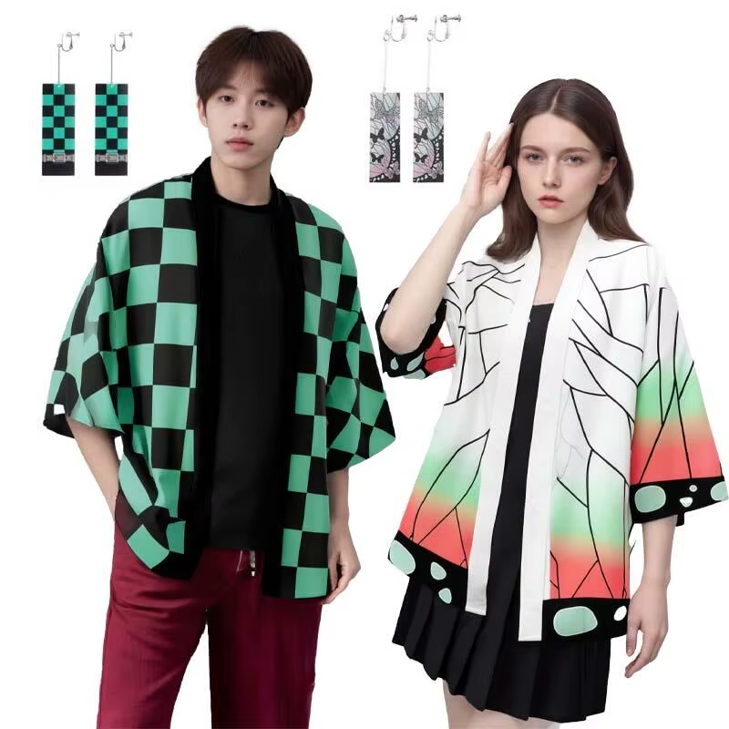 Seja o caçador de demônios mais estiloso com o Kimono Dunas, inspirado no icônico estilo de Kimetsu no Yaiba! Com um design único, este kimono é ideal para quem deseja incorporar a vibe dos caçadores de demônios, seja para cosplay, eventos ou simplesmente arrasar no look do dia! 😎👘