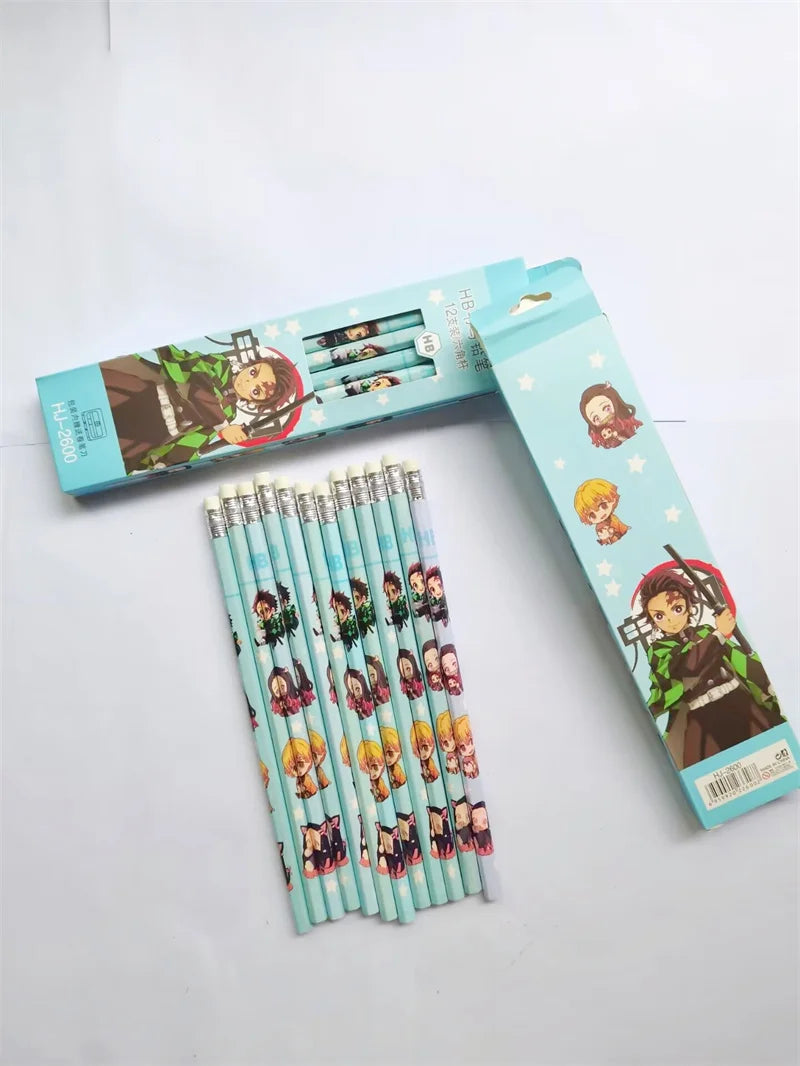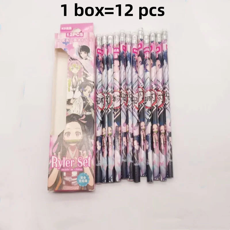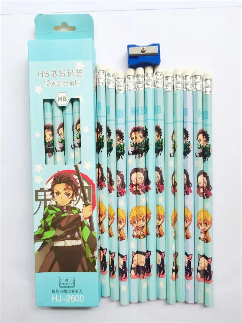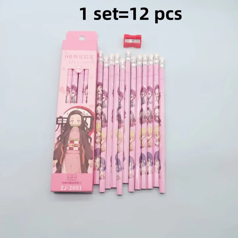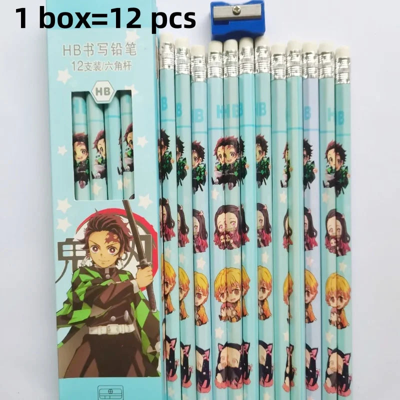 Kit 12un Lápis Demon Slayer, Borracha + Apontador