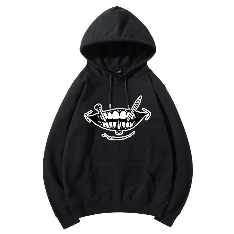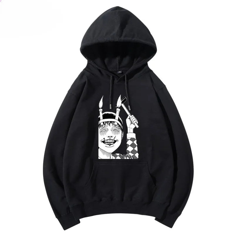 Com estampas em alta definição, o moletom traz cenas marcantes do mangá, olhos penetrantes e sorrisos perturbadores. Ideal para fãs de horror psicológico, arte japonesa e moda alternativa.