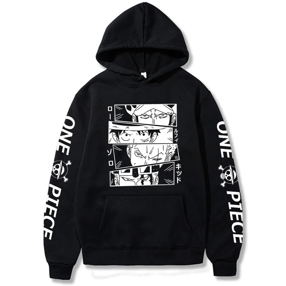 Confeccionado em flanela grossa com acabamento em poliéster de alta qualidade, o moletom garante conforto e estilo em todas as estações. A estampa é resistente e não desbota, feita pra durar tantas aventuras quanto a Grand Line.