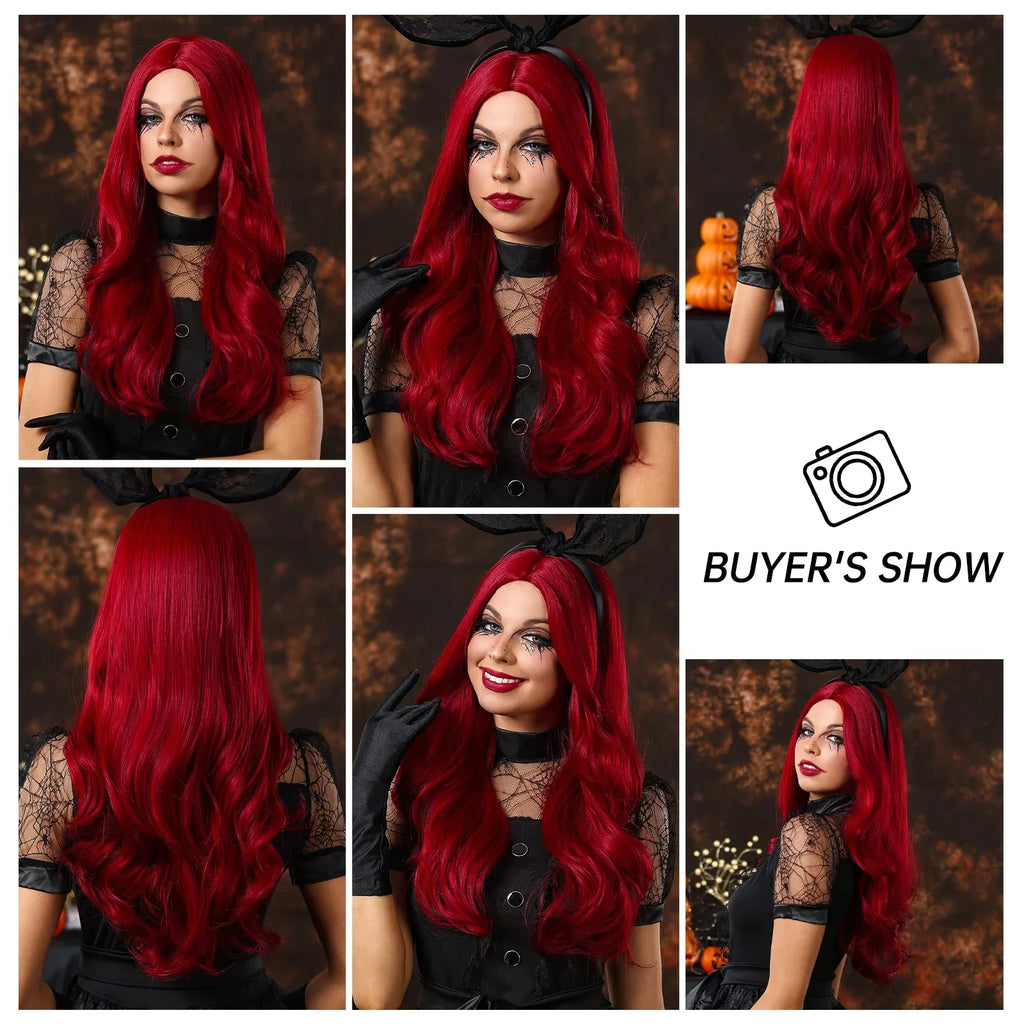 1x Peruca longa vermelha ondulada