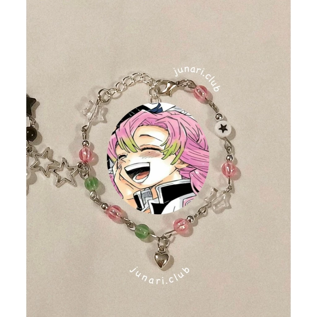 Essas pulseiras estilo Y2K são mais do que acessórios: são símbolos de cumplicidade, contraste e carinho. A versão escura, com estrelas e tom metálico, representa o lado enigmático de Iguro. Já a versão rosa e verde pastel traduz a doçura vibrante da Mitsuri.